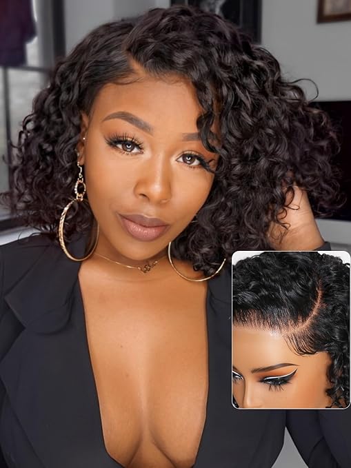- 4.Save money bob wig: Curly short bob wig human hair just 30 seconds install. No hairstylist needed. Ready to go wigs glueless human hair, beginner-friendly. Real glueless No glue needed. Easy to maintain everyday wear bob wig human hair glueless.