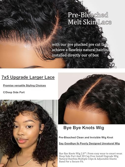 - 2. Upgrade invisible knots Glueless Bob Wig: Short curly bob Wigs Human Hair 7X5 hd lace wig human hair wig pre bleached clean invisible knots more natural than tiny lace. Say Goodbye to Poorly Designed Unnatural Wig.