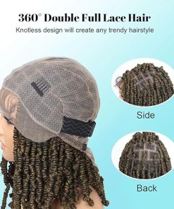 Wig store-Spring Twist Wig-Spring Twist Braided Wigs 12″ Full Double Lace Wigs for Black Women Square Knotless Passion Twist Braid Wig with Baby Hair Handmade Synthetic Blended Lace Front Wig Ombre Brown
