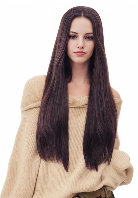 - [Premium Material] The long straight wig is made of high quality synthetic fiber.Unique texture gives you soft feeling.Pretty color makes the wig fashion and natural.