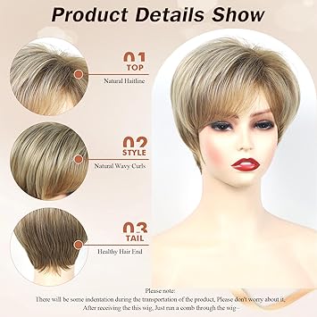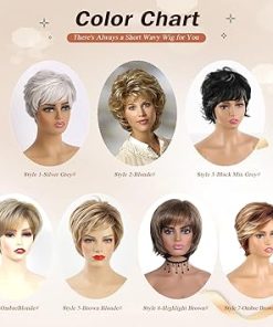 - Synthetic Pixie Cut Wigs With Bangs Specifications:This is Short Layered Pixie Cut Wigs for Women With Bangs,Mid Length. Scarf material is comfortable, Good air permeability. It can be used for very long time and repeatedly.