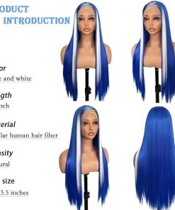 Wig store-Straight-Blue Lace Front Synthetic Wig Hightlight Pre-Plucked Glueless Blue White Wear and go HD Lace Front Wig Synthetic Long Straight Lace Front Wig with Highlights