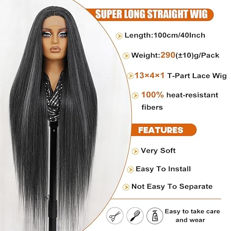 - 1、40 Inch Lace Wig With 100% Soft Heat Resistant Fiber,180% Density,Silk Smooth, Healthy.