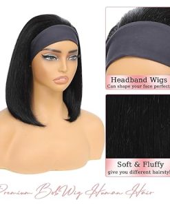 Wig store-Straight-Headband Wig Human Hair Short Straight Bob Headband Wigs for Black Women Human Hair Wigs Wear and Go Glueless None Lace Headband Wig for Party Daily Use(1B-14 Inch)
