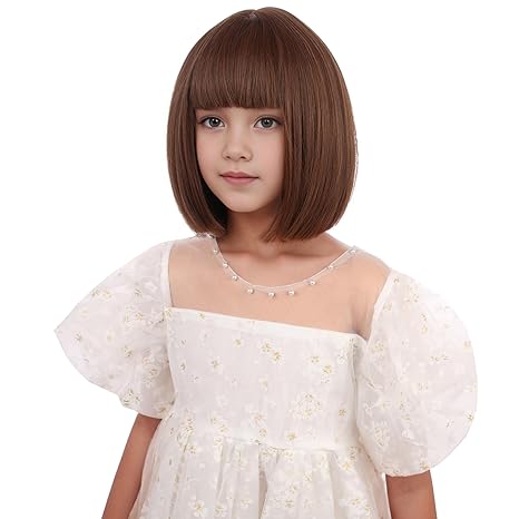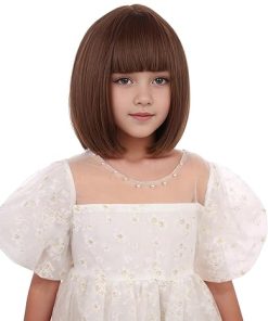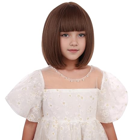 Wig store-Straight-Kids Brown Bob Wig Girls Short Honey Brown Bob Wig with Bangs Dark Brown Bob Wig for Child Heat Resistant Synthetic Wig with Wig Cap