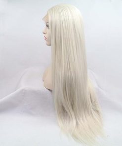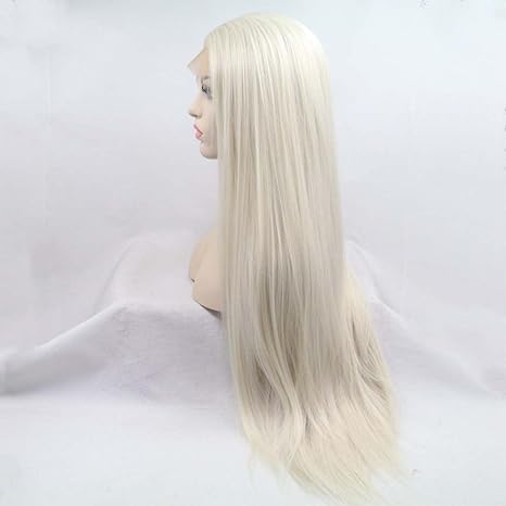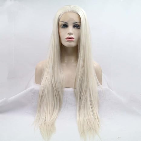 Wig store-Straight-Long Blonde Straight Lace Front Wigs #60 Platinum Blonde Natural Heat Resistant Synthetic Hair Half Hand Tied Wigs Pre Plucked 150% Density