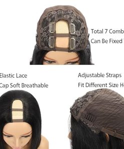 - 4.U Part Wig Cap:Straight bob Middle u part wig Cap with 4 Clips in U- Shape,2 combs in side and 1 comb in the back ,can fix hair wig well.wig cap size is medium size about(22-22.5 inches)with adjustable straps,can adjust tightness to fit all different size head