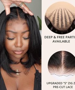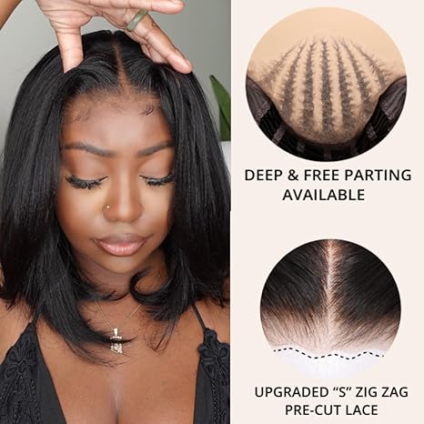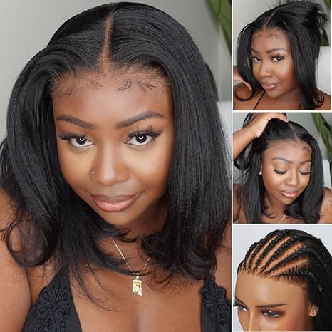 Wig store-Straight-Nadula Bye Bye Knots Yaki Straight Bob Wig Pre-Cut HD Lace Wigs Human Hair Put on and Go 7×5 Lace Front Bob Wig, Kinky Straight Pre Plucked Wigs with Bleached Knots Kie’s Style 150% Density 14 inch