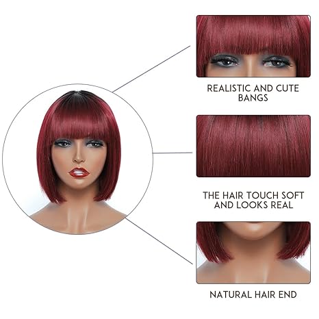 - EXTENSIVE USAGE: This fashionable and stylish wine red bob wigs looks pretty, attractive and feminine. It makes you to be a star in fancy dress, cosplay, Halloween, Christmas parties.
