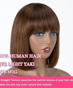 Wig store-Straight-QUEEN VIRGIN REMY QVR Highlight 8inch Light Yaki Straight Bob Wig Human Hair with Bangs 180% Density Glueless Machine Made None Lace Front Short Bob Wigs Ombre Brown Highlights Color for Black Women