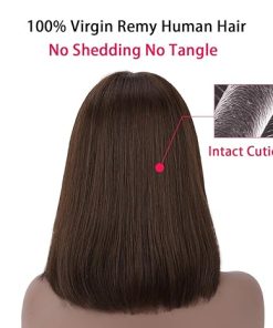 “Shop the SUYYA 10-inch Straight Bob Wig with Bangs! 100% Virgin Human Hair in Dark Brown. Elevate your style today!”