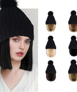 Wig store-Straight-Women Caps with Hair Knit Beanie Cap with Extensions Short Straight Hairstyle Hat Wigs Winter Knitted hat bob Wig
