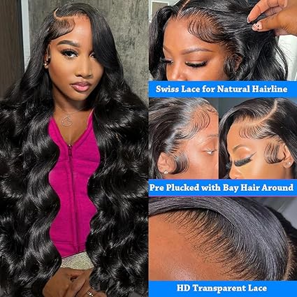 - 【HD Lace Front Wigs Human Hair Detail】 13×6 Lace Front Wigs Human Hair Pre Plucked Bleach Knots, Natural Hairline with Baby Hair Around. These Wigs Deliver an incredibly Realistic Appearance, 13×6 Ear to Ear HD Transparent Swiss Lace Suitable for Most Skins. The Length of The Body Wave Human Hair Wig Should be Straightened to Measure from Head Spin to The Bottom.