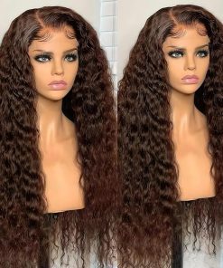 Wig store-Thick-30Inch Chocolate Brown Glueless Wigs Human Hair Pre Plucked Pre Cut 200% Density Brown Curly Wig Human Hair 7×5 Wear And Go Brown Deep Wave Lace Front Wigs Human Hair 4# Colored Loose Curly Wig
