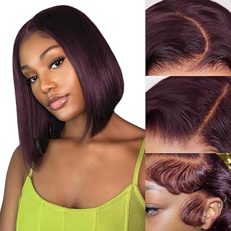 - Purple Bob Lace Front Wigs Human Hair Wig Cap Design : Stay cool under pressure (or on hot days!) with our thoughtfully designed purple lace front wig. Prioritizing breathability, this burgundy bob wig features an adjustable back strap and three secure combs ensuring a snug fit that won’t shift during your daily adventures. Whether you’re hitting the dance floor or chilling at home, you can focus on slaying your look—leaving any worries behind