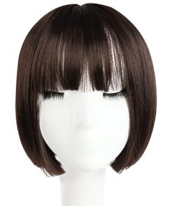 Wig store-Thick-HSPJHTM Brown Bob Wigs-Short Bob Hair Wigs 10″ Straight with Flat Bangs Synthetic Colorful Cosplay Daily Party Wig for Women Natural (Free Wig Cap)