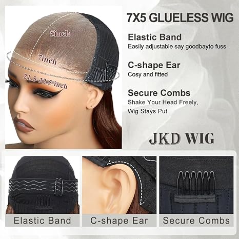 - 【Glueless Wigs Human Hair 3D Hair Cap】The Chocolate Brown Glueless Straight Hair wig features a 21.5-22.5 inch medium-sized 3D breathable cap, meticulously measured to snugly fit your head with its specially designed arch. Hat with non-slip elastic band and does Includes 4 small combs, making it suitable for all head sizes while ensuring breathability and comfort. Additionally, the removable and adjustable elastic band allows the scalp to breathe freely and securely holds the wig in place.