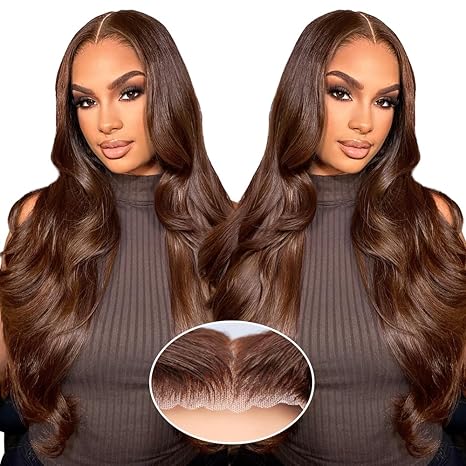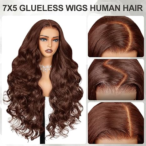 - 【Chocolate Brown Glueless Wigs High-Quality Raw Materials】Crafted from 100% virgin human hair sourced from young girl donors, this glueless wig features a pre-plucked 7X5 HD lace front for a natural look. With no shedding or tangling, it can be easily restyled and dyed, bleached, or permed to suit your desired style.