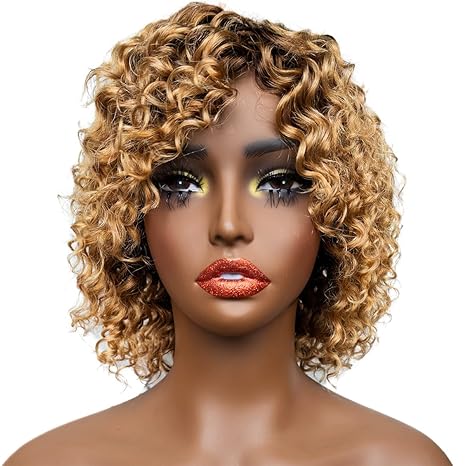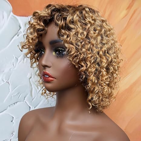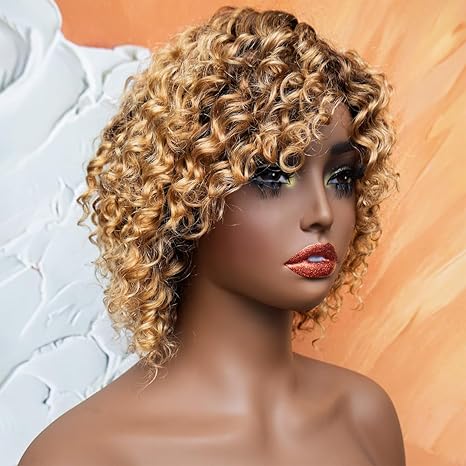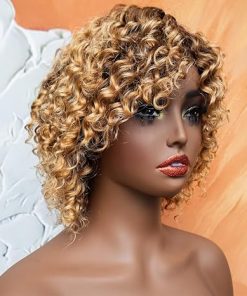 - Short Curly Style: Featuring a chic and sassy short length with tight, kinky curls and bangs for a trendy, voluminous look.