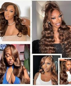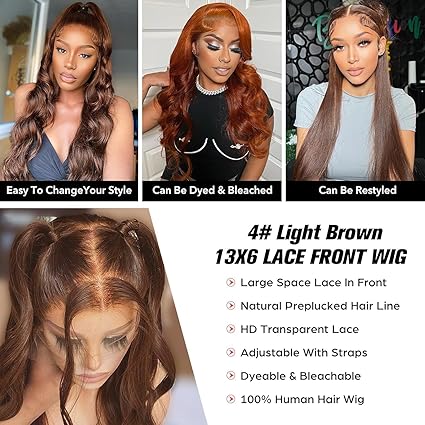 - 【13X6 Chocolate Brown Lace Front Wigs Human Hair Color】:Body Wave Brown lace front wigs human hair colored-Shining And Fashion Hair Color and style, no need to color yourself , wear and go directly , Natural pre plucked Hairline,Physical Heat Setting, Long Lasting Waves.