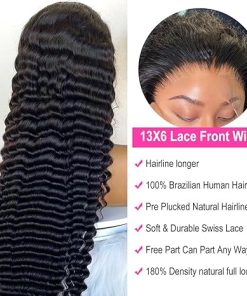 The “13×6 Deep Wave Lace Front Wig” is fantastic! It’s made from high-quality human hair with a natural deep wave texture. The pre-plucked baby hairs and 180% density give it a full, realistic look. The glueless design is super comfortable, and the 30-inch length adds a luxurious touch.