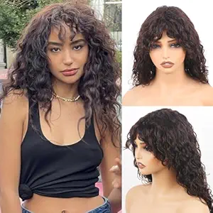 - Wet and Wavy Curly Bob with Bangs – Versatile & Stylish-This 22-inch wig features a wet and wavy texture and soft, natural bangs, creating a chic and trendy look. The curly bob style can be heat-styled to match your preferences, offering endless versatility for any occasion.