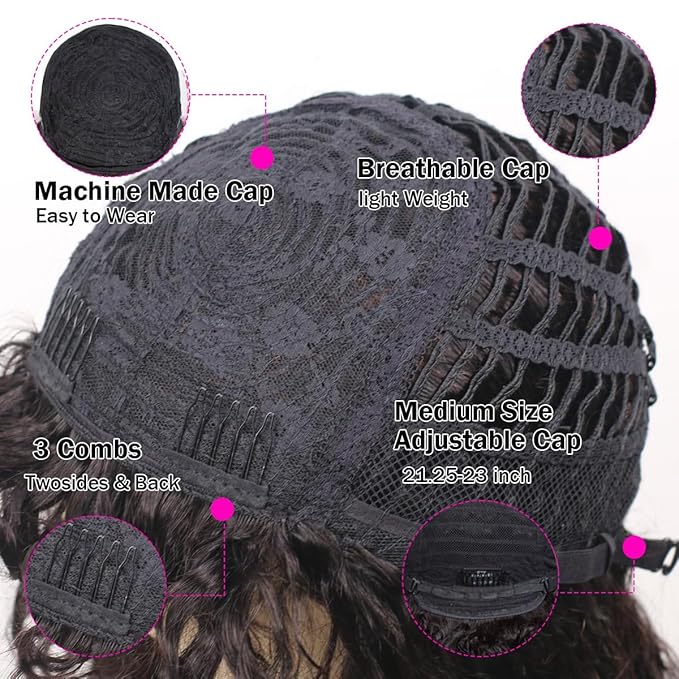 - Big Head Friendly Wig Cap – Secure & Adjustable Fit-The average cap size of 22.5 inches fits most head sizes comfortably. Equipped with 3 combs and adjustable straps, this wig stays secure during wear. The soft, breathable cap material ensures maximum comfort, ideal for long events or daily use.