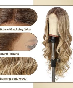 Wig store-Wavy-Blonde Lace Front Wig for Women 13×4 Body Wave Synthetic Wigs Highlight Pre-plucked Long Wavy Wig 150% Density Heat Resistant Hair Replacement Wigs 26 Inch