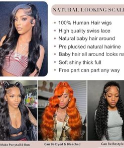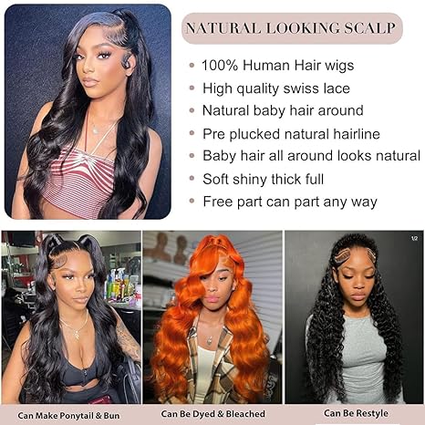 - 💎Lace Detail:13×6 HD Lace Frontal Wigs Human Hair, Ear to Ear Transparent Swiss Lace, Natural Hairline With Baby Hair Around, Simulated Scalp, Breathable&Durable, Lace Suitable for Most Skins, The Lace Area Is Large, Can Make Free Part, Middle Part Or Side Part, So You Can Do Many Hairstyles.