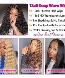 - Hair Material:13×6 HD Transparent Deep Wave Lace Front Wigs is Made of 100% Unprocessed Brazilian Virgin Human Hair.Soft and Healthy,Comfortable and Smooth,Silky and Clean.