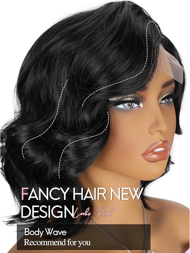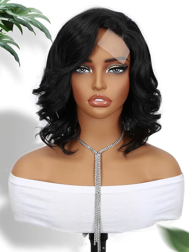 Wig store-Wavy-Fancy Hair Short Loose Wave Wig Synthetic Body Wavy Wig Glueless Curly Bob Wigs Small Lace Side Part Wavy Bob Wig for Black Women