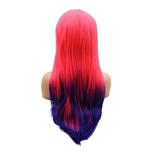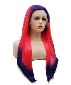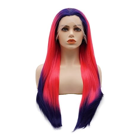 - Synthetic Lace Front Straight Long 24inch Purple Root Rose Red Ombre Wig
