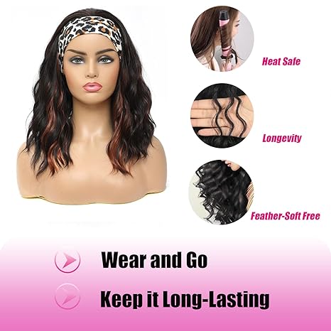 - Wigs Quality:Headband wig Short Wavy is made of high-quality synthetic fiber, smooth and soft, tangle-free and minimum shedding, The wigs is very soft and smooth, the touch is soft. It’s environment-friendly,natural, stylish, breathable and comfortable. It looks realistic as real human hair,Glueless headband wigs. It can be used for very long time and repeatedly.
