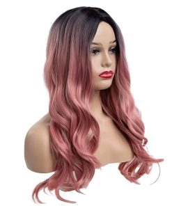 Wig store-Wavy-Long Curly Wavy Ombre Pink Wig for Women Synthetic Replacement Costume Halloween Natural Hair Wigs for Daily Use …