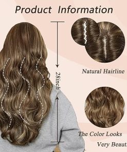 Wig store-Wavy-Long Wavy Wigs for Women Brown Wigs Blonde Highlights Wigs Middle Part Long Curly Wig 28Inch Heat Resistant Wig Hair Replacement Wigs Natural Looking Synthetic Wig for Holiday Daily Party Use
