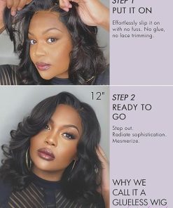 - Shedding-Free Design: Say goodbye to constant shedding thanks to the high-quality construction of our glueless wigs human hair pre plucked pre cut, which keep your loose body wave wig looking neat and tidy. No more worrying about shedding with our human hair lace front wigs