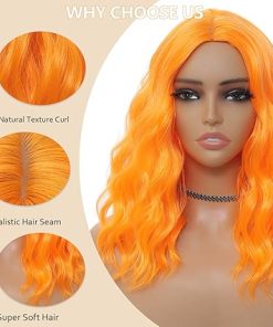 Wig store-Wavy-Orange Wig for Women- Wavy Curly Orange Bob Wigs Middle Part 14 Inch Shoulder Length Heat Resistant Synthetic Colorful Wig