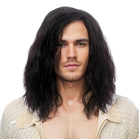 - “The REEWES Men’s Wig offers a long, curly, and layered hairstyle crafted from flame-retardant synthetic hair, ensuring a natural, glossy, and soft appearance reminiscent of real hair. This black wig is designed with versatility in mind, suitable for daily wear, parties, and various costume and cosplay occasions.”