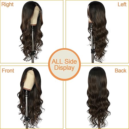- 【Premium Material】The brown highlight long wavy wig is made of high-temperature resistant synthetic fiber and stands heat up to 160°c(320°f). The hairline is made hand-tied, which makes the hair look more real. Easy to comb and not easily tangle and hair loss.