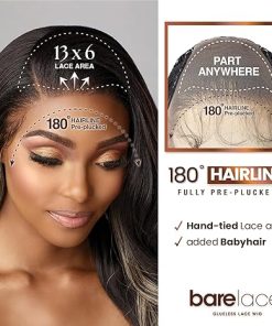 - Hairline: Free parting 13 x 6 lace front with 180 degree pre plucked natural density hairline with babyhair ear to ear