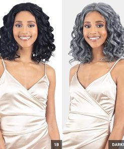 Wig store-Wavy-Shake-N-Go Human Hair Blend HD Lace Front Wig Legacy Flora (1B_Natural (off) Black)