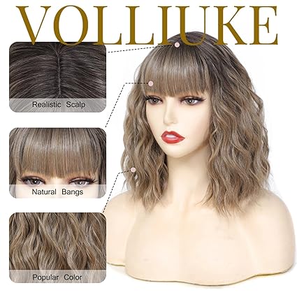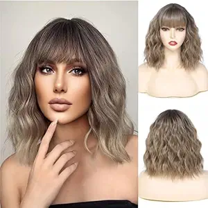 Discover our Wavy Short Brown and Blonde Bob Wig with Bangs! Perfect for daily use or parties. Shop now for a stunning look!
