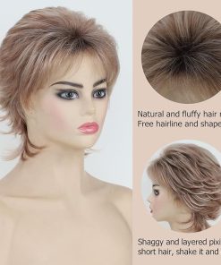 - This short hair wigs for white women is made with a mixture of brown and a little blonde hair, dark hair roots, and paired with a shaggy and layered pixie cut hairstyle, stylish and chic, classic and versatile, whether it is everyday use, or dating, parties, travel, holiday carnival and other occasions to use, can easily win praise.