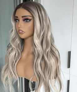Wig store-Wavy-Wear and Go Glueless Body Wave Synthetic Lace Front Wig Pre Plucked Pre Cut Lace Wig for Beginners Platinum Ash Blonde with Brown Roots Ready to Wigs for Women 20 Inch Wavy