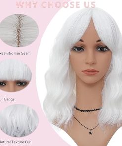 - 【White Hair Wig】This short white wavy wig is a sleek and stylish bob wig. Softly waves make this the perfect look. A bang adds a perfectly feminine touch. This is a simple chic shoulder-length style that will impress everyone