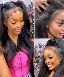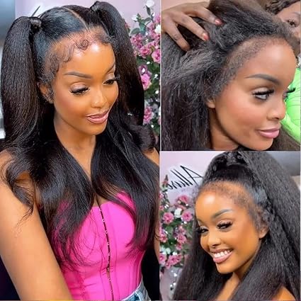 - Brazilian Kinky Straight Wigs Color: 16-30 Inch kinky straight hair, Natural Black Color Yaki Lace Front Wigs, Standard Size Kinky Straight Glueless Wig